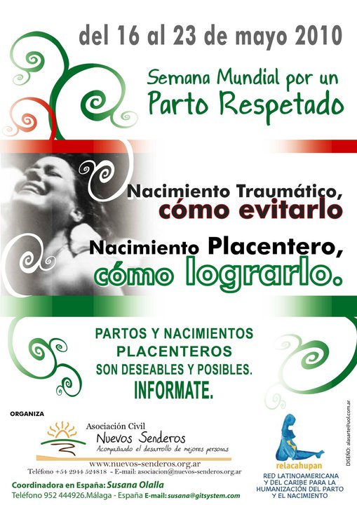 Este es el lema de la semana mundial por un parto respetado, que este año se celebra del 16 al 23 de mayo, con charlas, foros y otros eventos en varias ciudades del mundo.